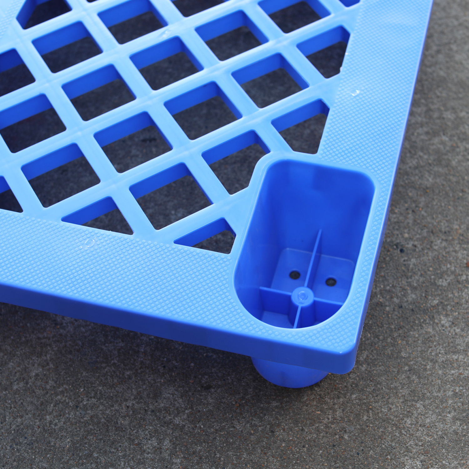 企业生产的九脚塑料托盘,选用高品质的聚乙烯或聚丙烯原料,具有良好的耐腐蚀、防潮、抗老化特性,适用于各类室内外仓储环境以及不同行业的物流需求。